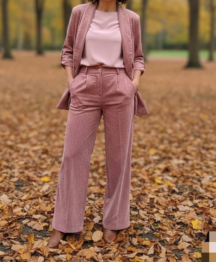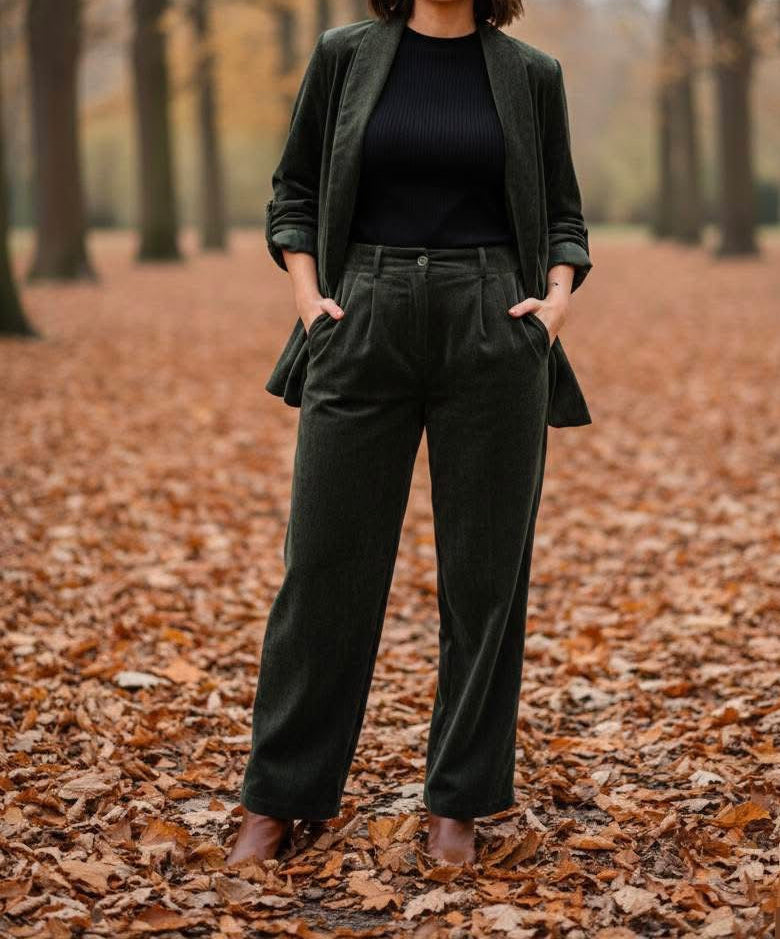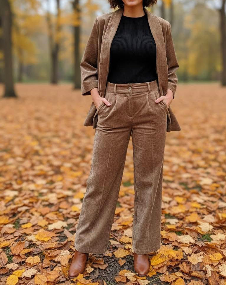 Conjunto de Blazer com calça pantalona em veludo,Blazer com forro