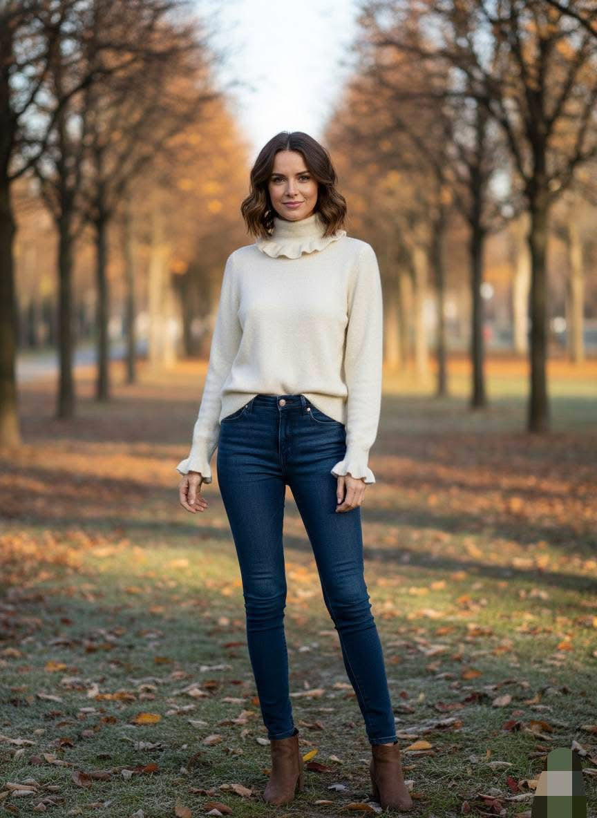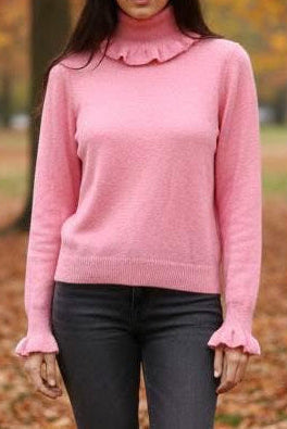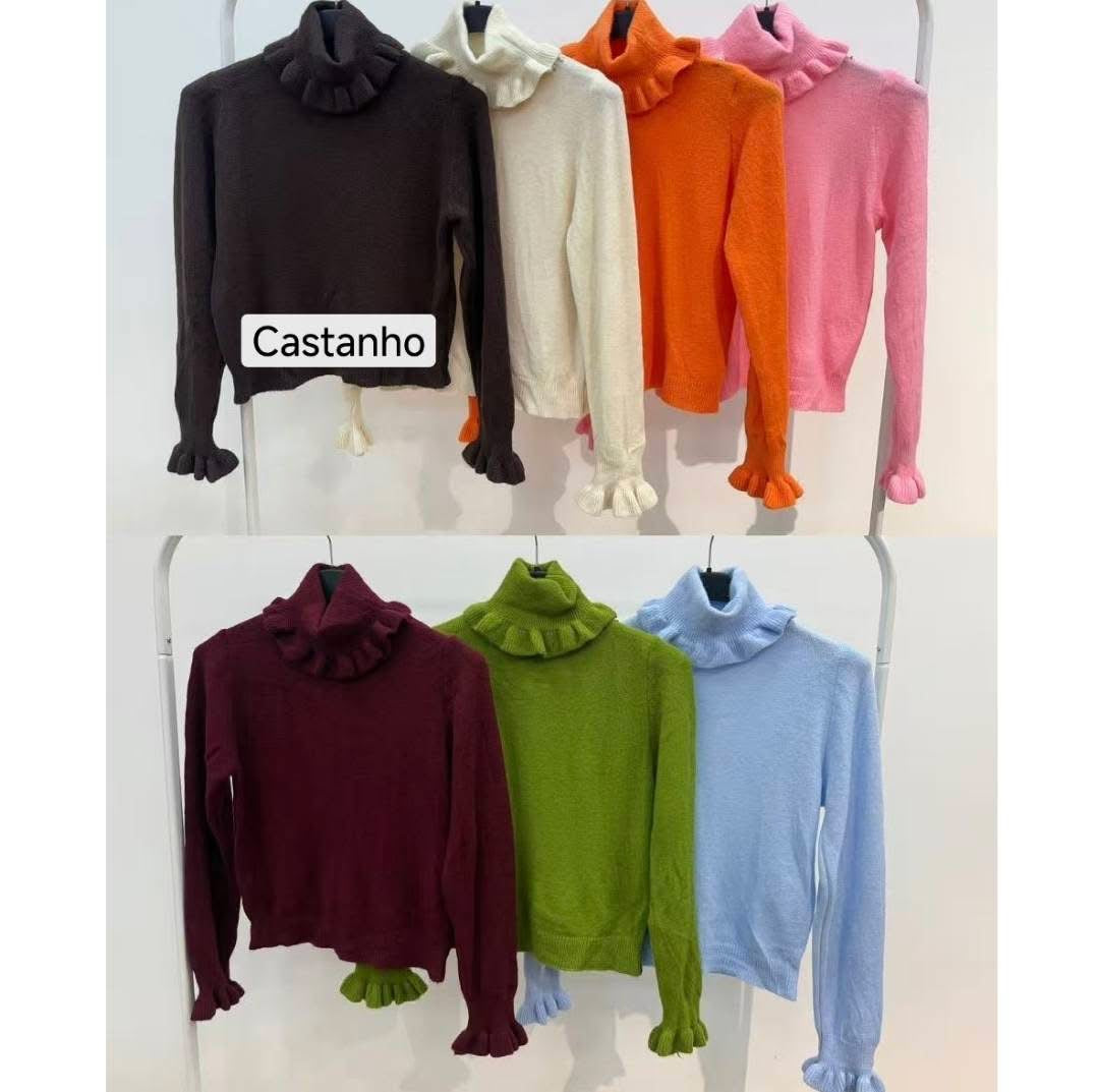 Camisola da malha fofinho com folhos na gola e na manga