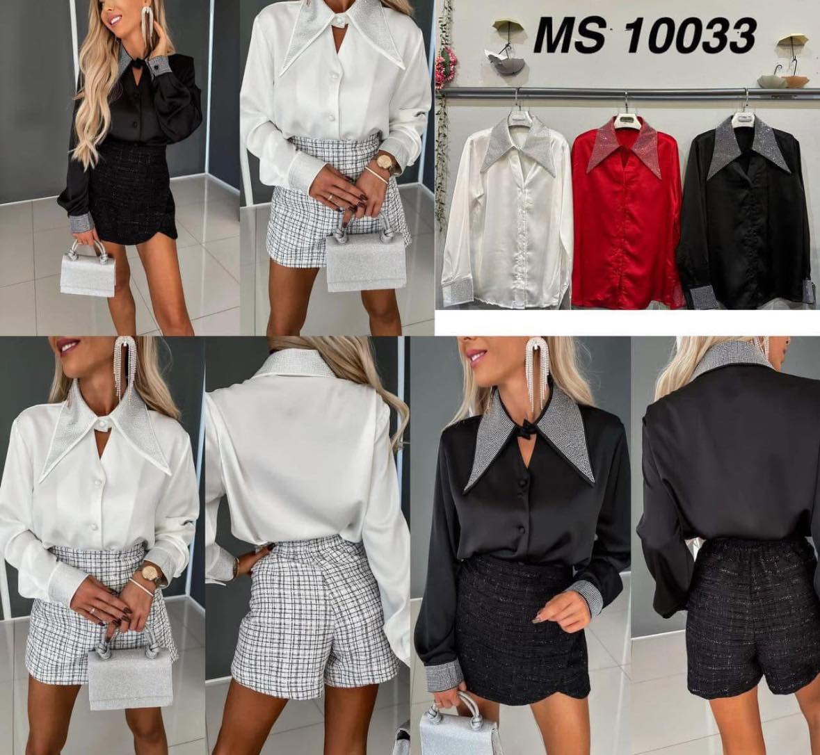 Camisa de cetim com brilhos