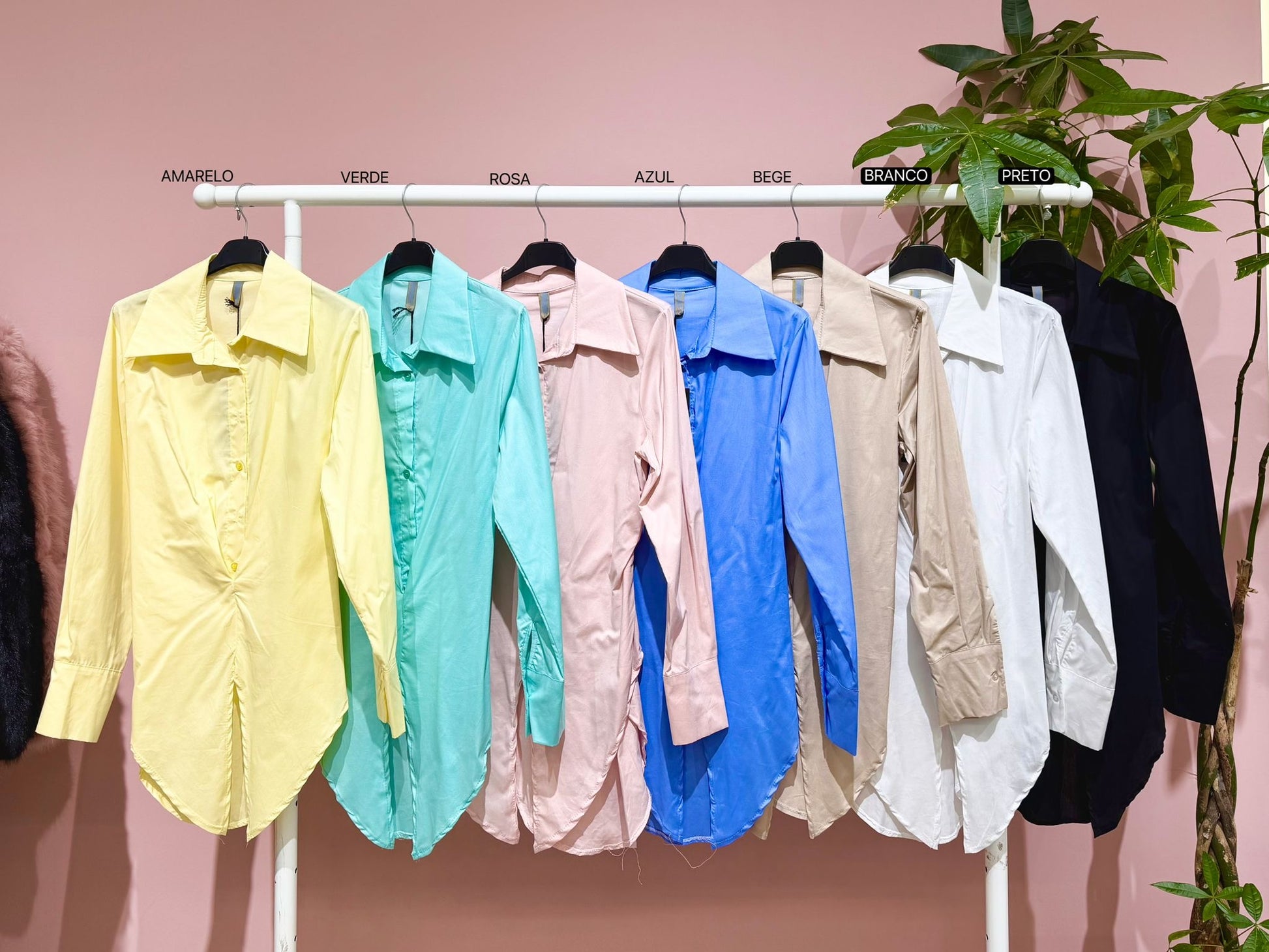 ℹ️: Camisa popelin, tem amarração atrás cintura