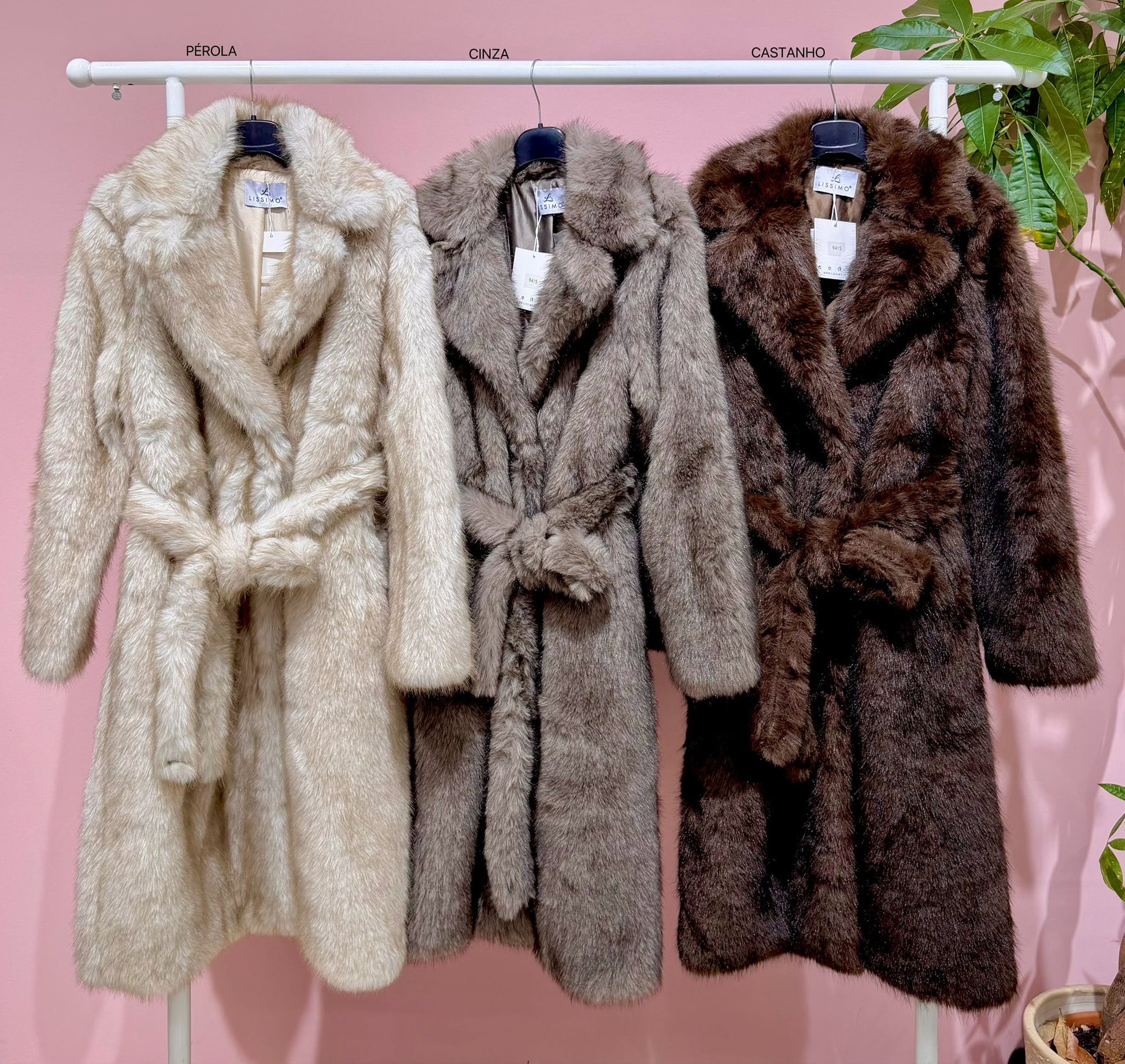Casaco de pêlo tamanho único veste até L/XL. Até 63 cm cava. Cumprimento:110 cm. Com bolsos.