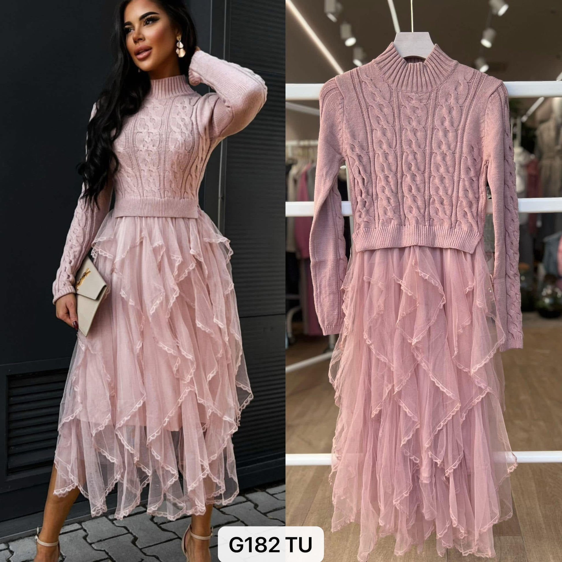 Composto por camisola de malha + saia. Tamanho único veste XS S M L.