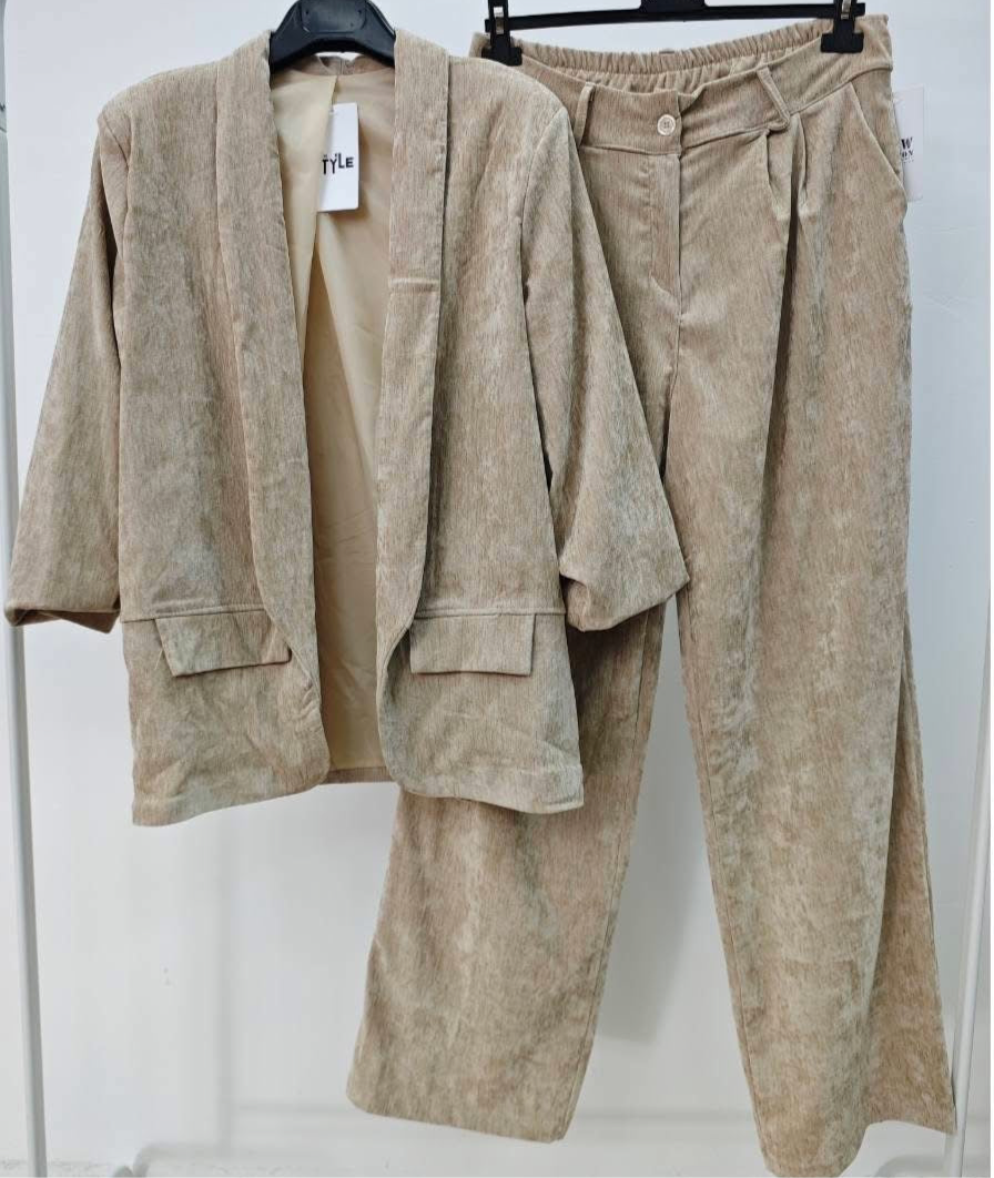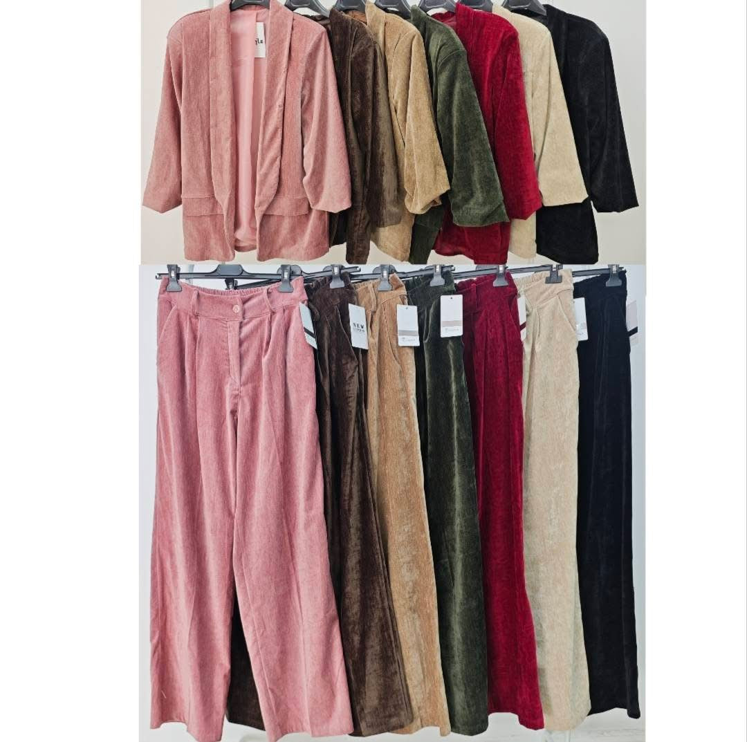 Conjunto de Blazer com calça pantalona em veludo,Blazer com forro