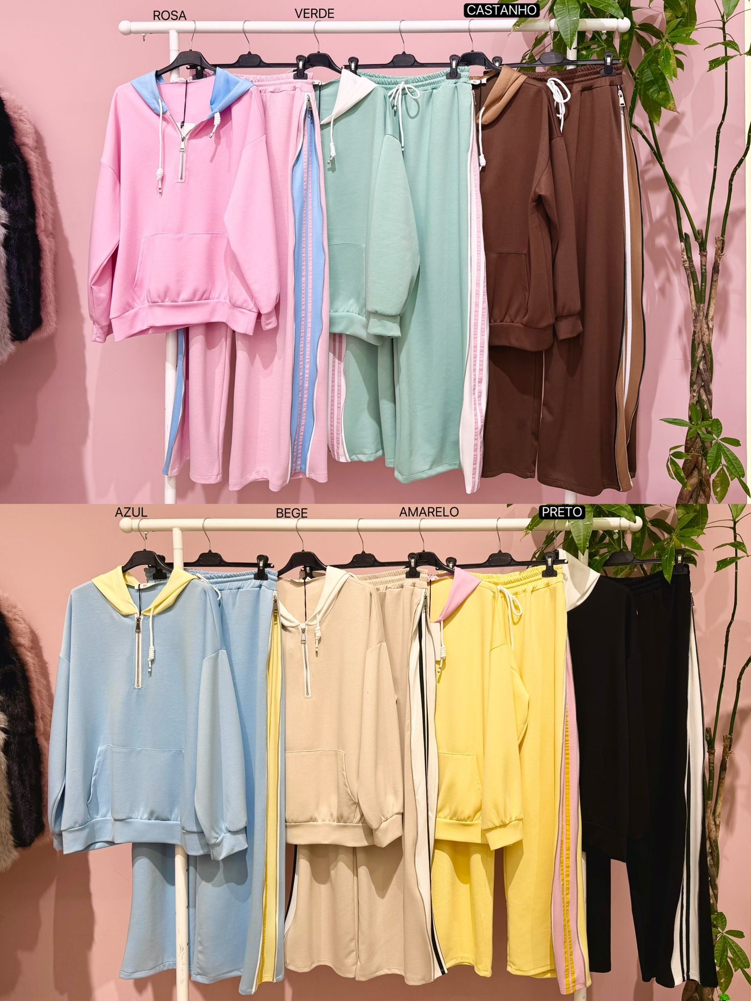 ℹ️:Tecido com grande elástico, calça cintura alta, tem punhos ajustável