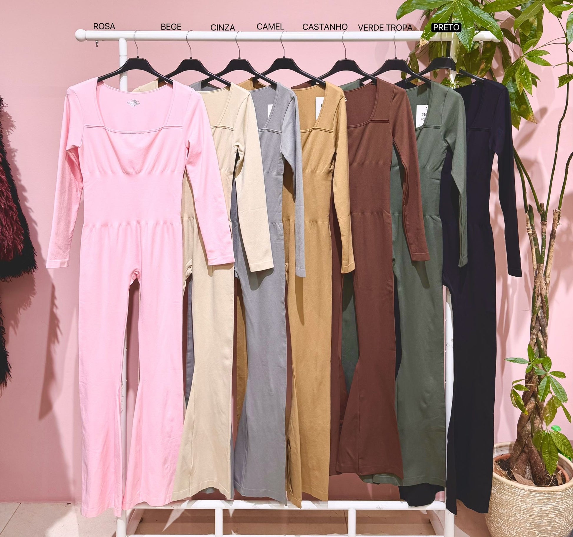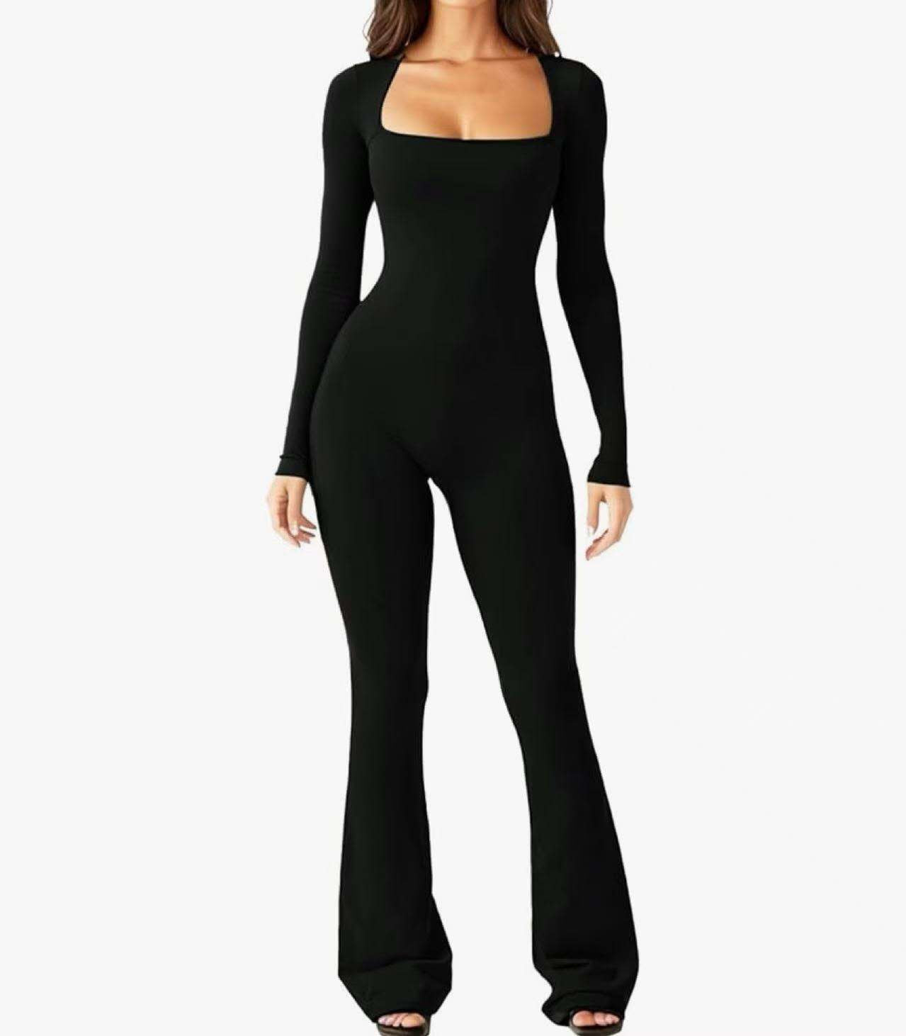 ℹ️:Macacão moderadores, gola quadrado, perna boca de sino